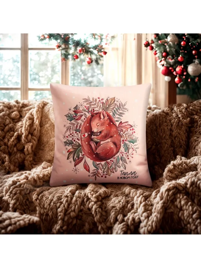 В целом, этот новогодний чехол на подушку — это сочетание функциональности, эстетики и долговечности. Он помогает преобразить интерьер к зимним праздникам или просто украсить дом в холодное время года. Его нейтральный бежевый цвет позволяет гармонично вписаться в любой стиль оформления — от классики до модерна — делая пространство более уютным и завершенным. Это отличный выбор для тех, кто хочет подчеркнуть атмосферу праздника в своем доме или подготовить подарок для близких.