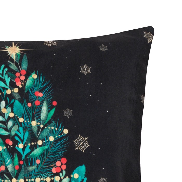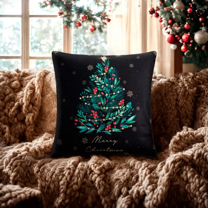 Чехол на подушку 40×40 см — это глубокая зима, схваченная в один жест. Чёрный велюр с гладкой фактурой и плотностью 220 г/м² создаёт ощущение тишины перед бой курантов — тёплой, уютной, наполненной ожиданием. Его бархатистая поверхность отражает свет, как тёмное небо с первыми звёздами, а универсальный размер идеально ложится на диван, кресло или кровать. Молния по нижнему краю делает чехол практичным, а однотонный цвет — универсальным фоном для новогоднего декора.