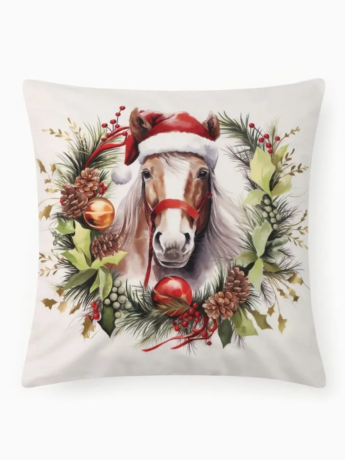 Этот новогодний декоративный чехол на подушку выполнен из мягкого велюра с плотностью 190 г/м² и предназначен для создания праздничной атмосферы в доме. Размер 40×40 см делает его универсальным аксессуаром для диванов, кресел или кроватей, добавляя уют и стиль в зимний сезон. Белый цвет с изображением лошади в венке отлично подходит для оформления интерьера к Новому году и зимним праздникам.