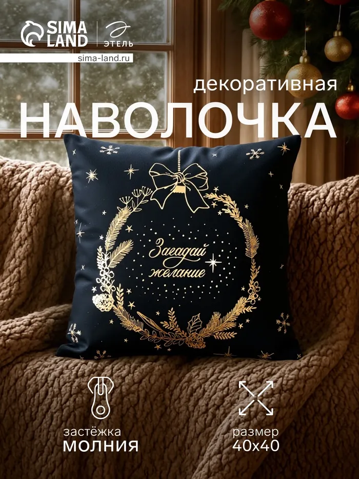 Этот чехол на подушку создан для тех, кто хочет добавить праздничное настроение и уют в интерьер во время новогодних праздников. Размер 40×40 см позволяет легко украсить диван, кресло или кровать, создавая атмосферу волшебства и тепла. Выполненный из мягкого велюра с плотностью 190 г/м², он обладает приятной тактильной текстурой и долговечностью. Черный цвет делает его универсальным элементом декора, сочетающимся с различными стилями оформления дома.