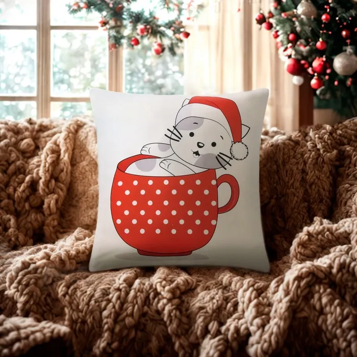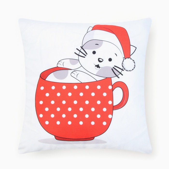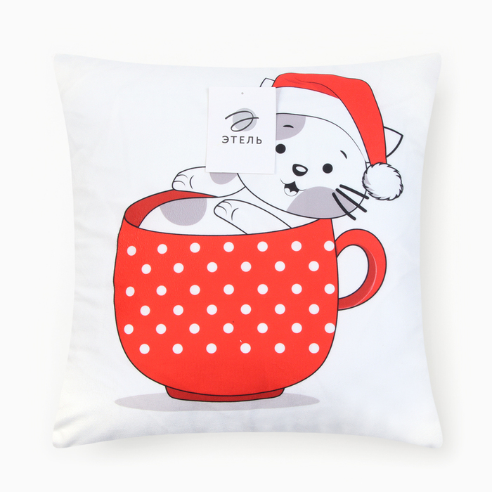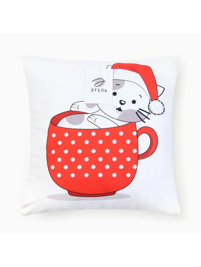 Наволочка декоративная новогодняя «Этель. Новогодняя чашка в горошек» 40×40 см — Характеристики