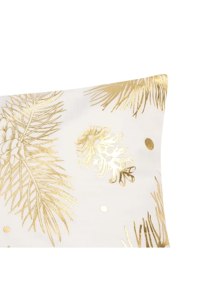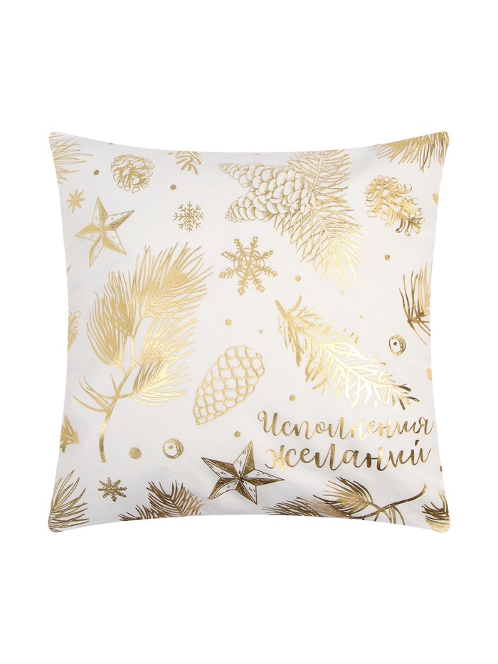 Изготовленный из полиэстера плотностью 160 г/м², этот чехол обладает высокой износостойкостью и долговечностью. Велюровая фактура придает изделию особую мягкость и тепло, что особенно важно в холодное время года. Надежная молния обеспечивает быстрый и удобный процесс смены наволочки, позволяя легко обновлять внешний вид подушки без лишних усилий. Отсутствие декоративных элементов делает дизайн более сдержанным и современным, а его классическая цветовая гамма — белый с золотистым — создает ощущение праздника и изысканности.