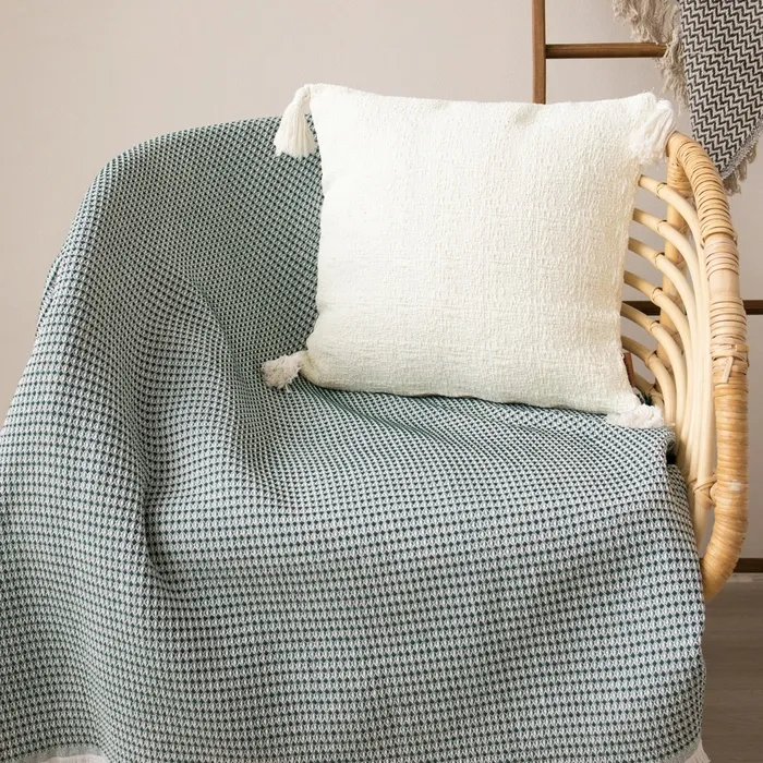 Наволочка выполнена из рогожки, которая является олицетворением так называемого «крафта». Красоту таких тканей обеспечивает сама фактура и меланжевый эффект (неровный окрас пряжи). Материал повторяет структуру ткани из натурального льна, но обладает дополнительными полезными свойствами: высокой износостойкостью, прочностью и устойчивостью к запахам.