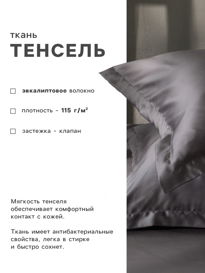 Наволочка SL Home Tencel 50*70+3 см , цв. серый — Характеристики