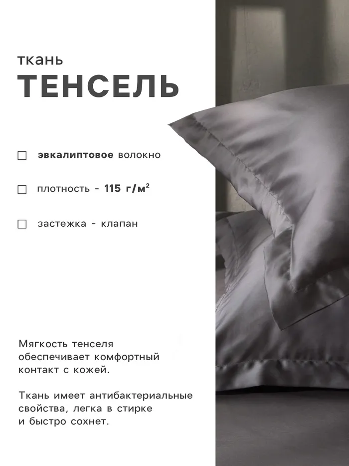 Эта стильная наволочка из эвкалиптового волокна превратит ваш сон в настоящий отдых. Серый цвет и гладкая структура идеально впишутся в любой интерьер, добавляя спальне уют и элегантность. Изготовленная из тенселя, она обеспечит максимальный комфорт для вашей кожи.