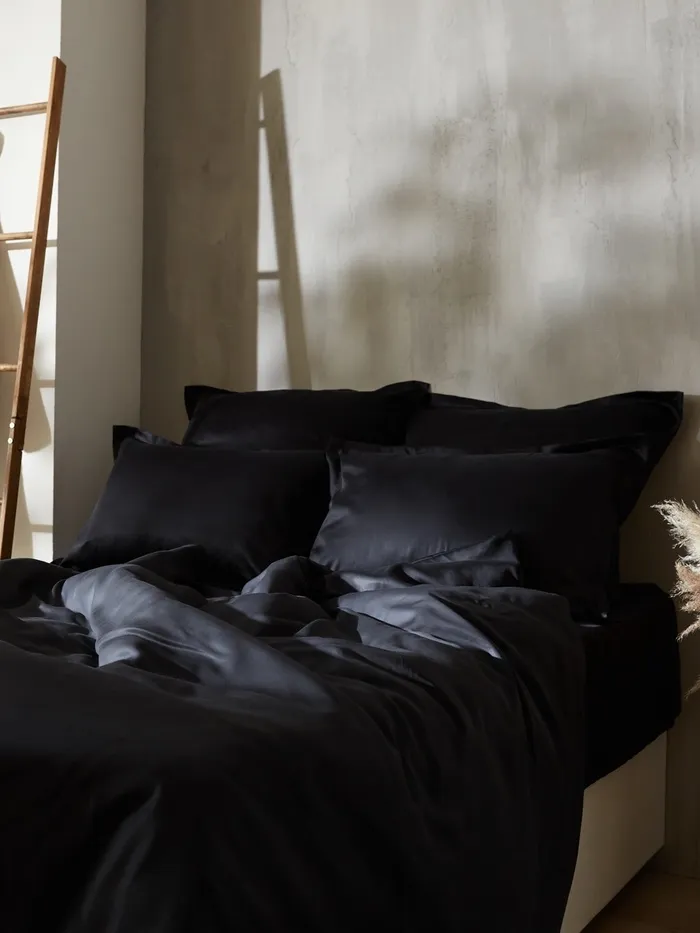Тёмная наволочка из тенселя — стильное дополнение к вашему интерьеру, сочетающее элегантность и комфорт. Этот материал, созданный из эвкалиптовых волокон, обладаёт гладкой текстурой и идеально подходит для любого времени года, создавая уют и нежность во время сна.