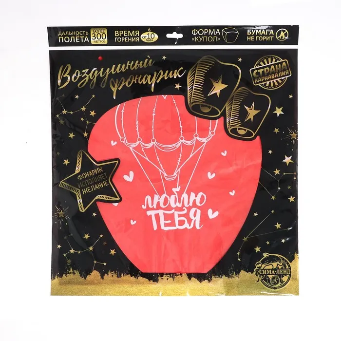Небесный фонарик «Люблю тебя», купол, красный — Характеристики