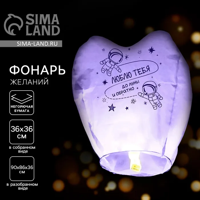 Небесный фонарик «Люблю тебя», сердце, фиолетовый — Характеристики