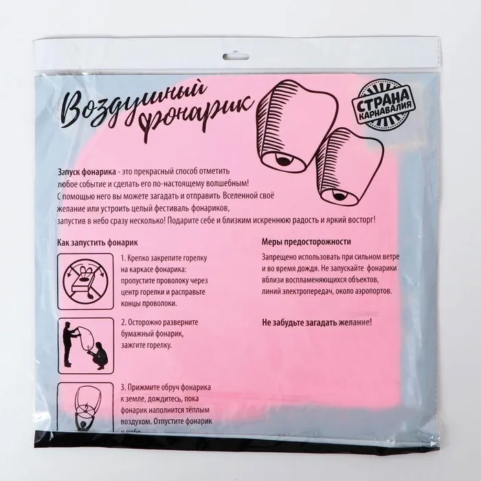 Объёмная конструкция из специальной экологически чистой бумаги действует по принципу воздушного шара. Надёжно закреплённая в нижней части бумажного купола горелка разогревает воздух внутри фонарика, поднимает его вверх и эффектно подсвечивает изнутри, создавая таинственный ореол.