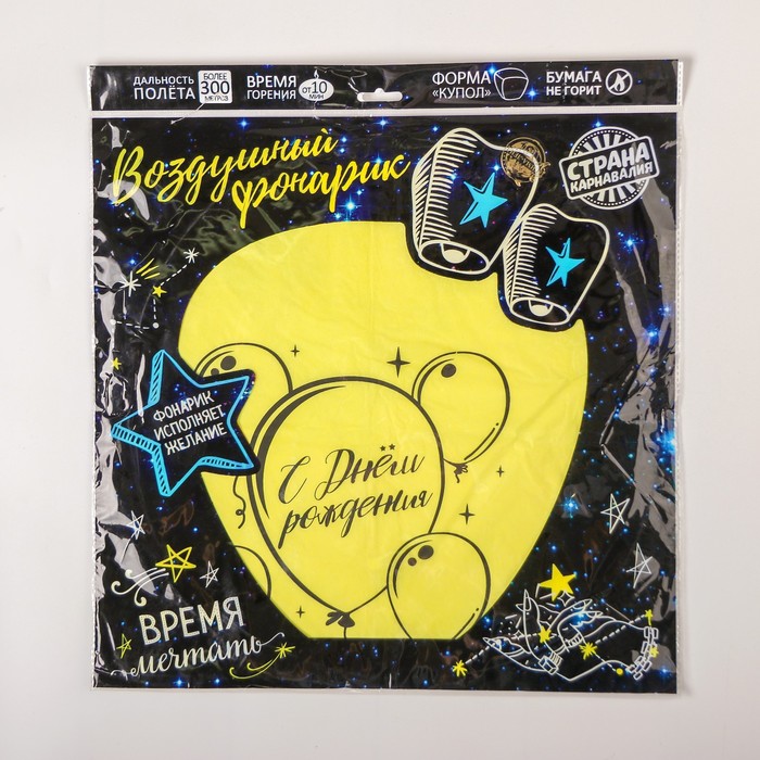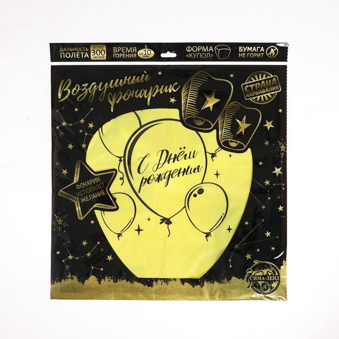 Небесный фонарик «С днём рождения», купол, жёлтый — Характеристики