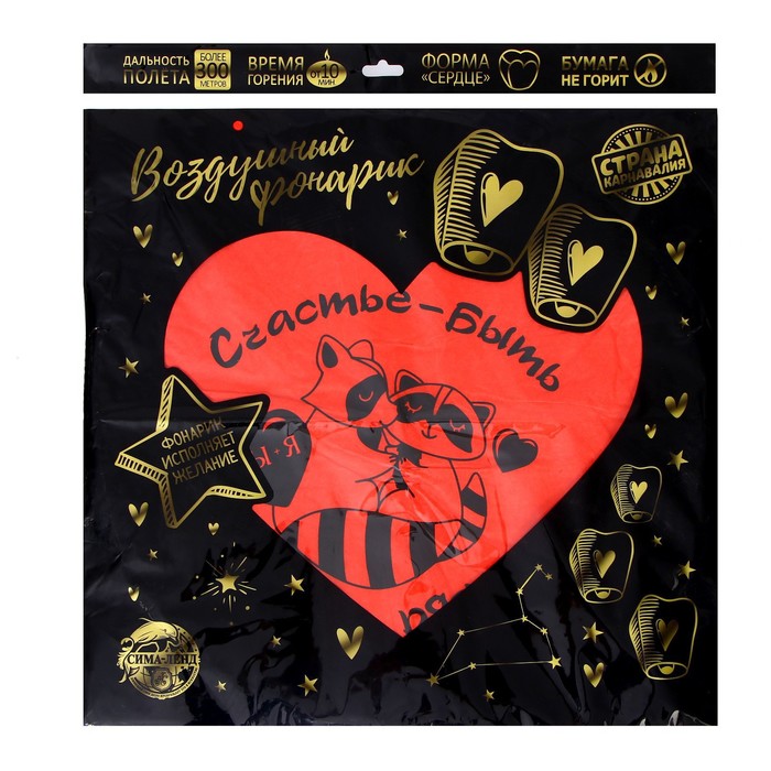 Небесный фонарик «Счастье - быть рядом», сердце, красный — Характеристики