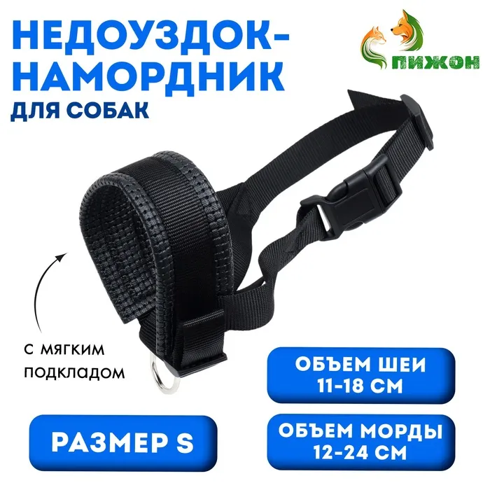Недоуздок-намордник для собак с подкладом, размер S, ОM 12-24 см, ОШ 11-18 см, черный — Характеристики