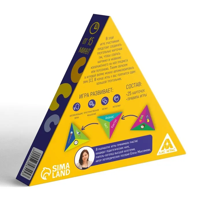 В этой игре участникам предстоит соединять треугольные карточки так, чтобы собрать картинку и название изображенного на ней предмета или персонажа. Таким образом в игровой форме можно автоматизировать звук [С]. В конце игры у вас получится один большой треугольник.