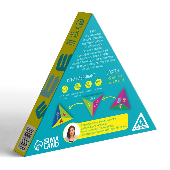 В этой игре участникам предстоит соединять треугольные карточки так, чтобы собрать картинку и название изображенного на ней предмета или персонажа. Таким образом в игровой форме можно автоматизировать звук [Ш]. В конце игры у вас получится один большой треугольник.