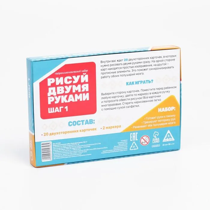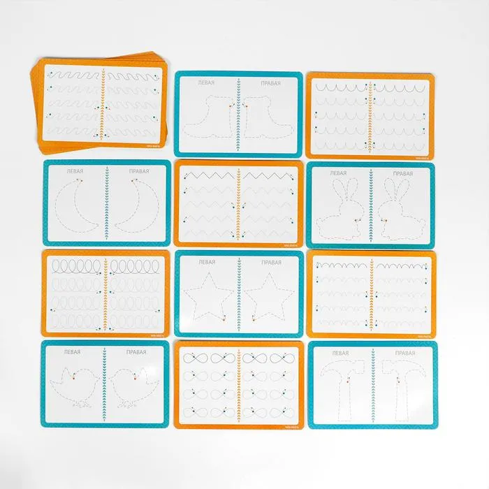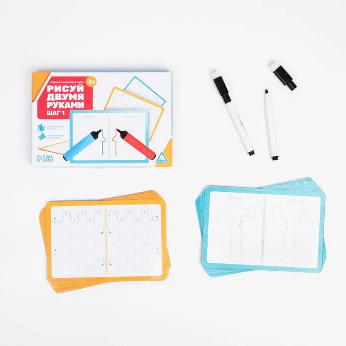 Нейропсихологический набор пиши-стирай «Рисуй двумя руками. Шаг 1», 20 карт, 3+ — Характеристики