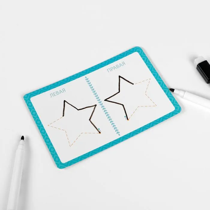 Это поможет синхронизировать работу обоих полушарий мозга. Все карточки многоразовые. Стереть рисунок можно с помощью сухой салфетки или обратной стороной маркера.