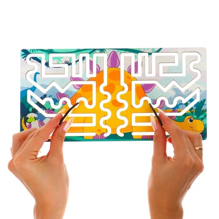 Ребёнок проводит фишки по лабиринту одновременно двумя руками. Это простое действие заставляет мозг работать активнее, улучшая связь между полушариями. Результат — гармоничное развитие интеллекта и творческих способностей.