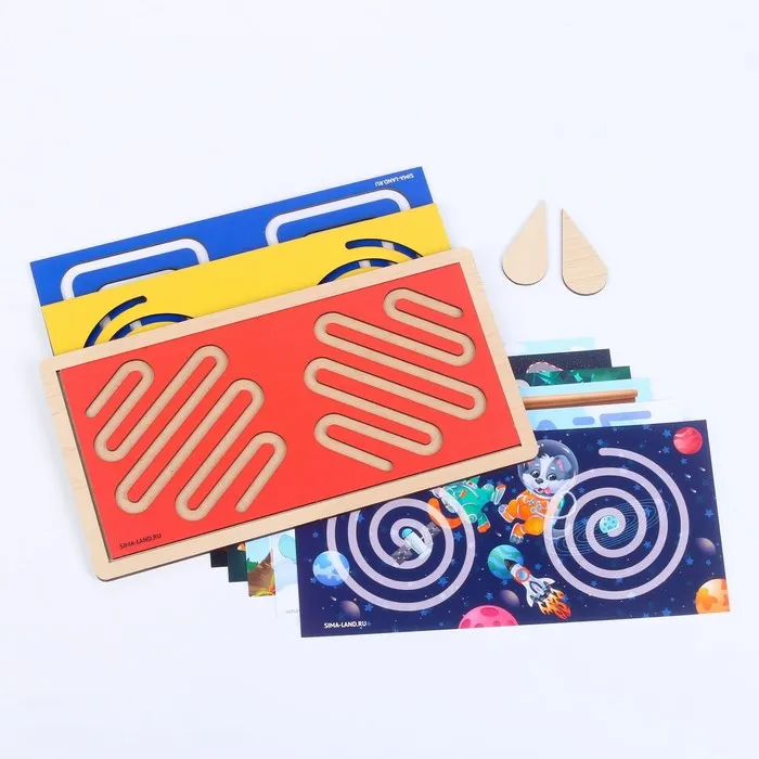 Межполушарная доска — это поле с углублением в виде спирали или лабиринта. Задача малыша — с помощью специальных фишек одновременно двумя руками пройти маршрут из одного конца в другой.