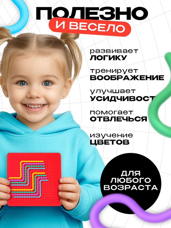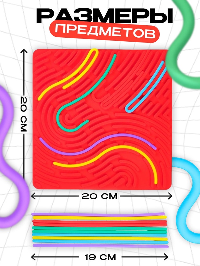 - 10 гибких разноцветных палочек чётко держатся в лабиринте, не выпадают при наклонах. Ребёнок без труда создаёт ровные линии и сложные узоры.