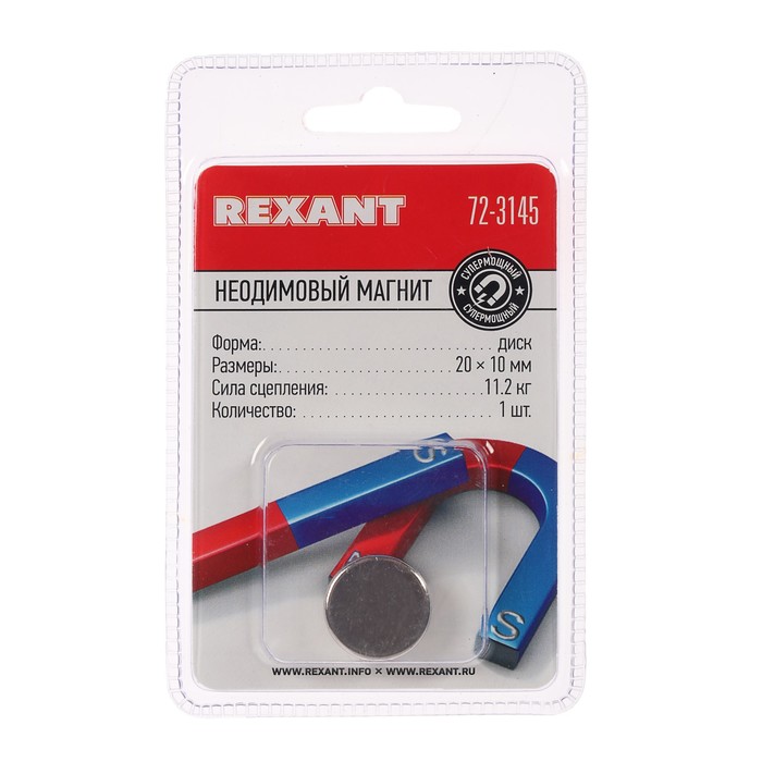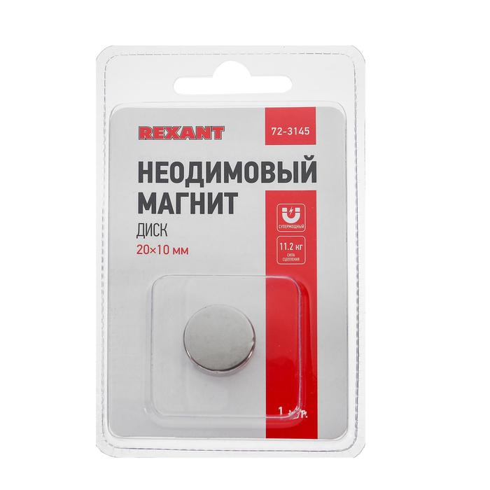 Неодимовый магнит REXANT, диск 20х10 мм, сцепление 11.2 кг — Характеристики