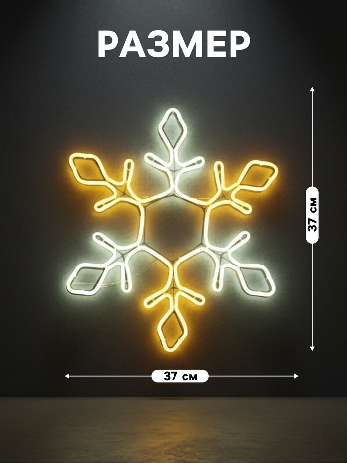 Неоновая фигура «Снежинка», 37 см, 288 LED, 12 В, 8 режимов, свечение белое/тёплое белое — Характеристики