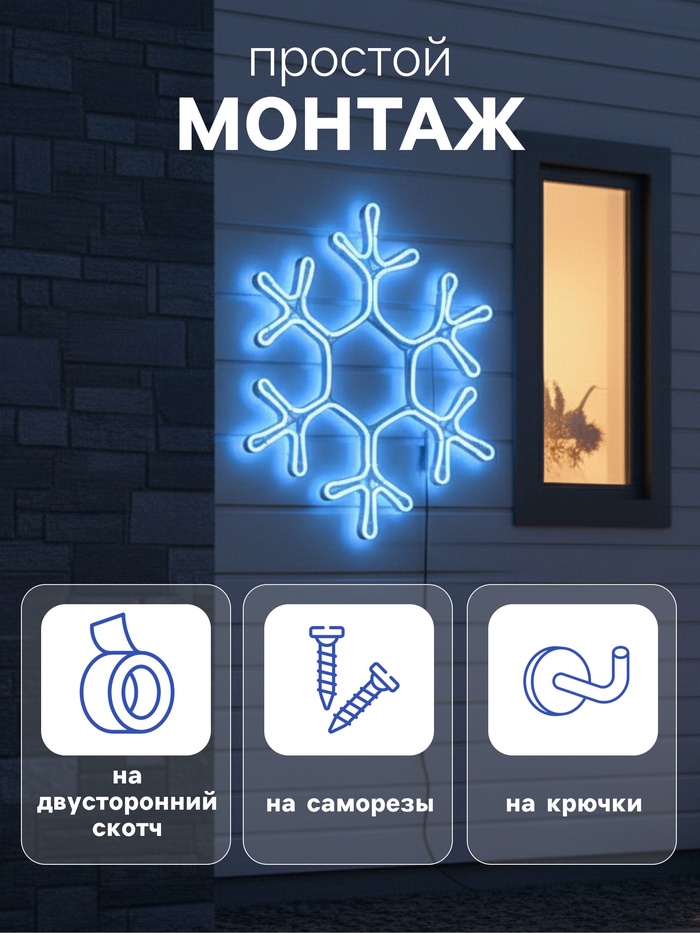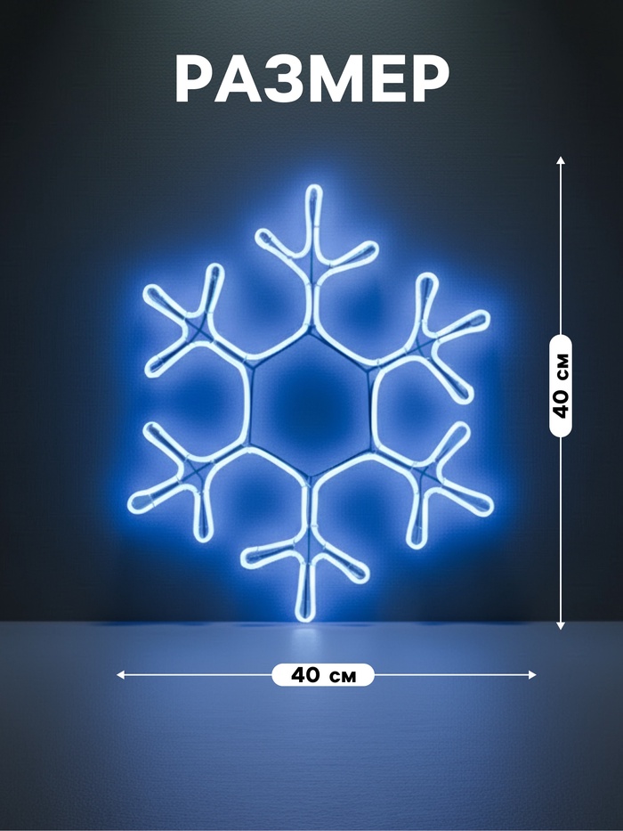Неоновая фигура «Снежинка», 40 см, 360 LED, 220 В, свечение синее — Характеристики