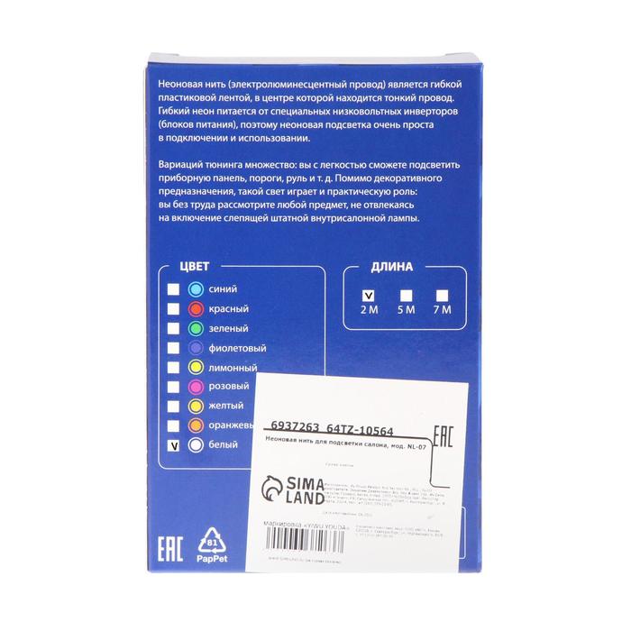 Неоновая нить Cartage для подсветки салона, адаптер питания 12 В, 2 м, белый — Характеристики