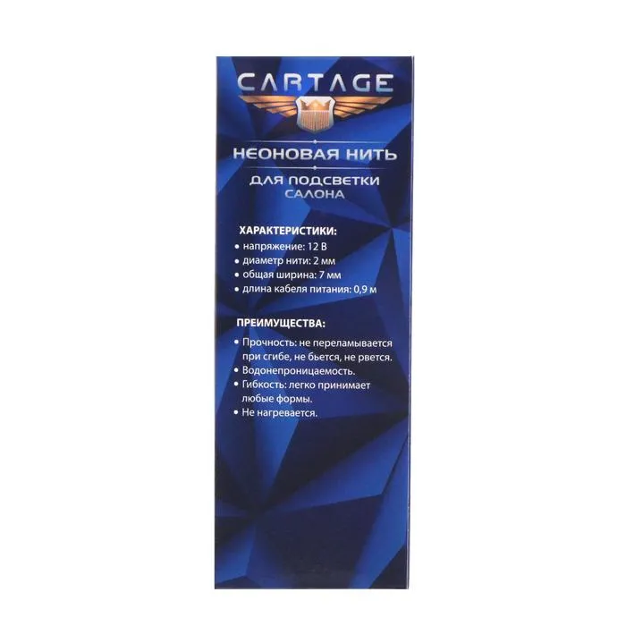 Неоновая нить Cartage для подсветки салона, адаптер питания 12 В, 2 м, красный — Характеристики