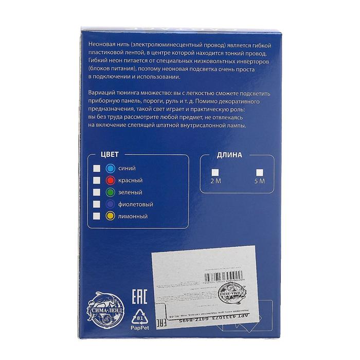 Неоновая нить Cartage для подсветки салона, адаптер питания 12 В, 5 м, красный — Характеристики