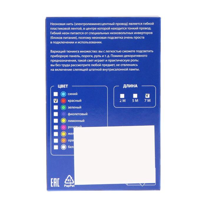 Неоновая нить Cartage для подсветки салона, адаптер питания 12 В, 7 м, красный — Характеристики