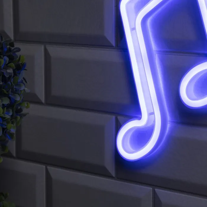 Неоновая вывеска «Ноты» 19 × 21 см, батарейки ААх3 (не в комплекте), USB, свечение голубое — Характеристики