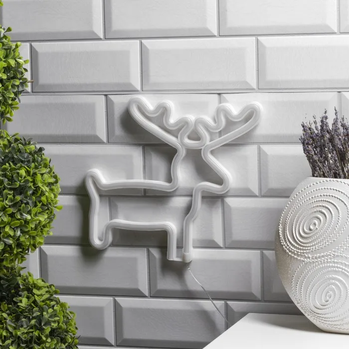 Неоновая вывеска «Олень» 27 × 26 см, батарейки ААх3 (не в комплекте), USB, свечение тёплое белое — Характеристики