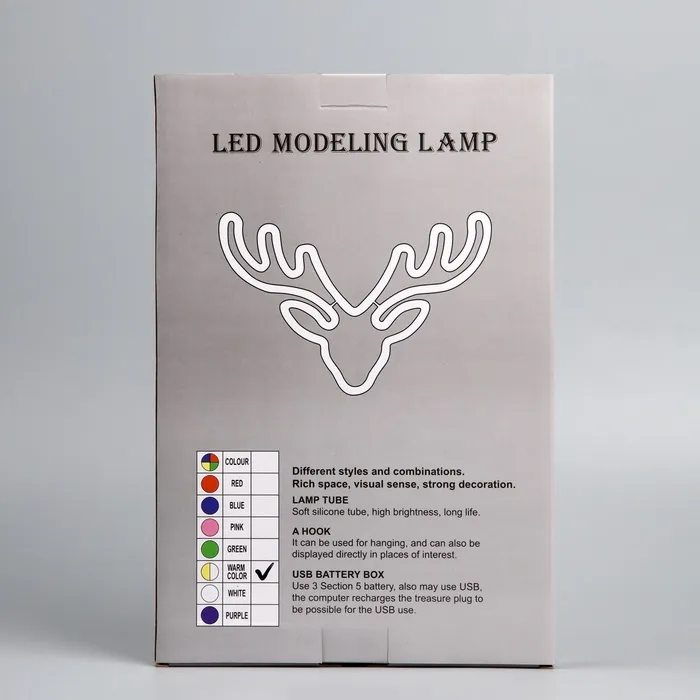 Неоновая вывеска «Олень» 35 x 23.5 см, батарейки AAx3 (нет в комплекте) + USB, свечение тёплое белое — Характеристики