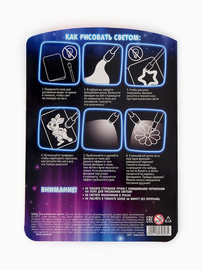 - Увлекательный процесс: светящиеся рисунки завораживают и мотивируют к дальнейшему творчеству.