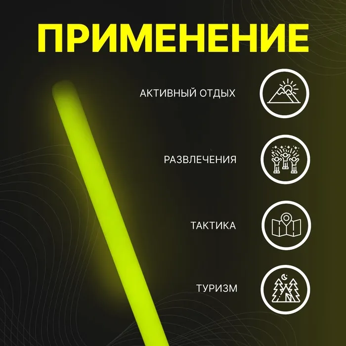 Химический источник света — отличная замена фонарика в непредвиденной ситуации. Это прочные и герметичные палочки, которые не требуют дополнительных элементов питания и могут эффективно использоваться для подсветки или подачи сигналов туристами, спелеологами, велосипедистами или любителями подводного плавания.