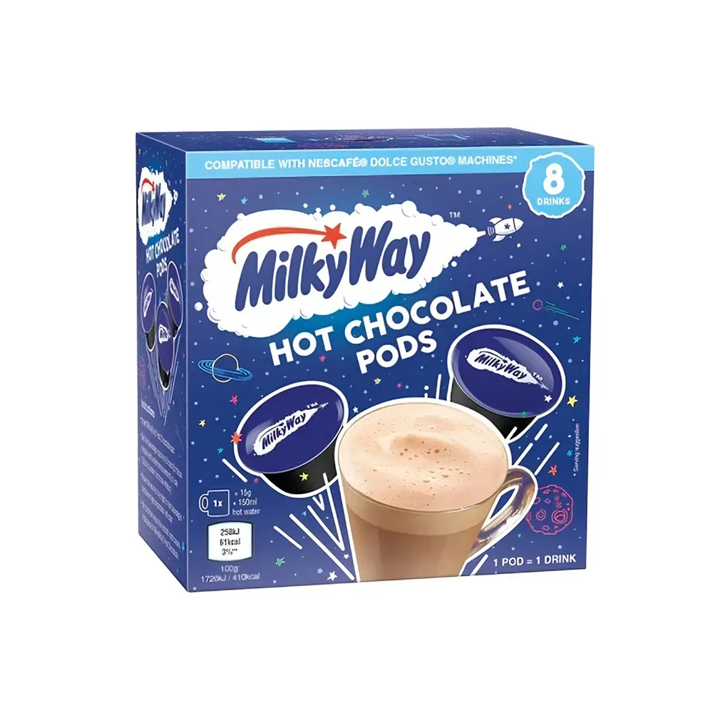 Капсулы "Milky Way®", совместимые с кофемашинами "NESCAFÉ® Dolce Gusto®", позволят насладиться вкусом любимого шоколадного батончика в виде горячего напитка! Наслаждайтесь оттенками молочного шоколада, сливок и ванили!
