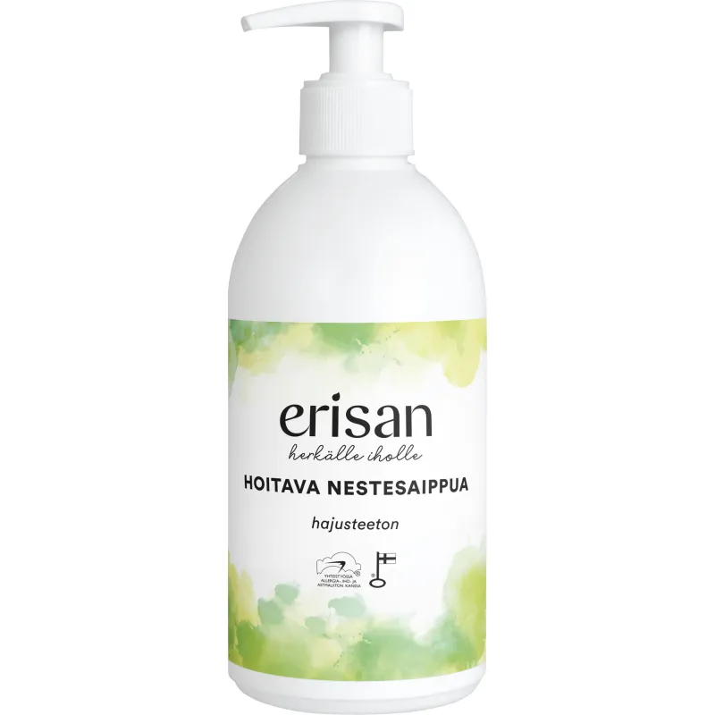 Жидкое мыло Erisan бережно очищает вашу кожу, оставляя её гладкой и шелковистой. Его формула с бетаином и глицерином ухаживает и увлажняет, сохраняя естественный баланс влаги кожи. Идеально подходит для частого использования. Продукт разработан в сотрудничестве с Ассоциацией аллергии, кожи и астмы, не содержит отдушек и красителей. Сделано в Финляндии. Объём 500 мл с удобным дозатором.