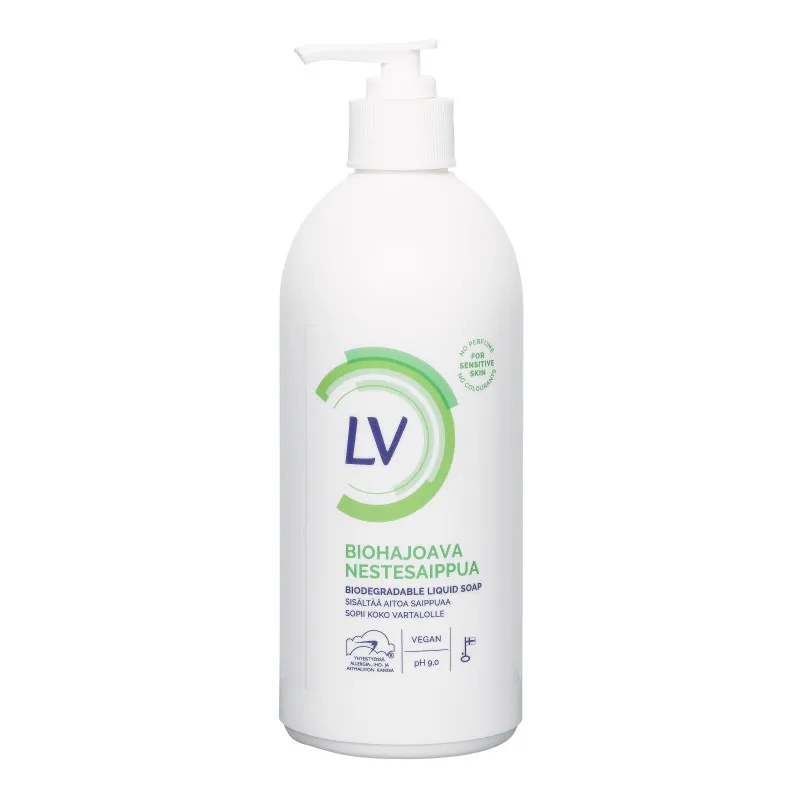 Жидкое мыло LV биоразлагаемое, без отдушек и красителей, это экологичный выбор для вашего дома и дачи. Продукт содержит натуральное мыло, подходит для мытья рук и тела всей семьи. Разработано совместно с Ассоциацией аллергии и астмы. Веганская формула. Большая упаковка 500 мл. Мы постоянно обновляем информацию о продукте. Рекомендуем всегда проверять информацию на упаковке.