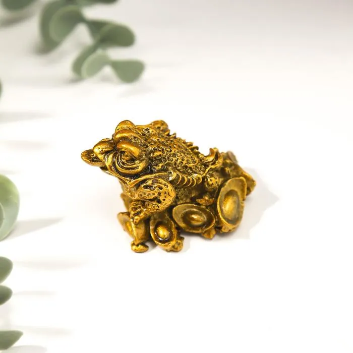 Нэцкэ бронза "Жаба на слитках" 5,5 х 3,5 х 3 см символ успеха и богатства. Обязательный атрибут такого амулета – монетка во рту . По законам фен-шуй, талисман должен располагаться лицом внутрь дома, а не наоборот. Иногда лягушка бывает без монет, но с прорезью во рту, куда можно вставить настоящую денежку.