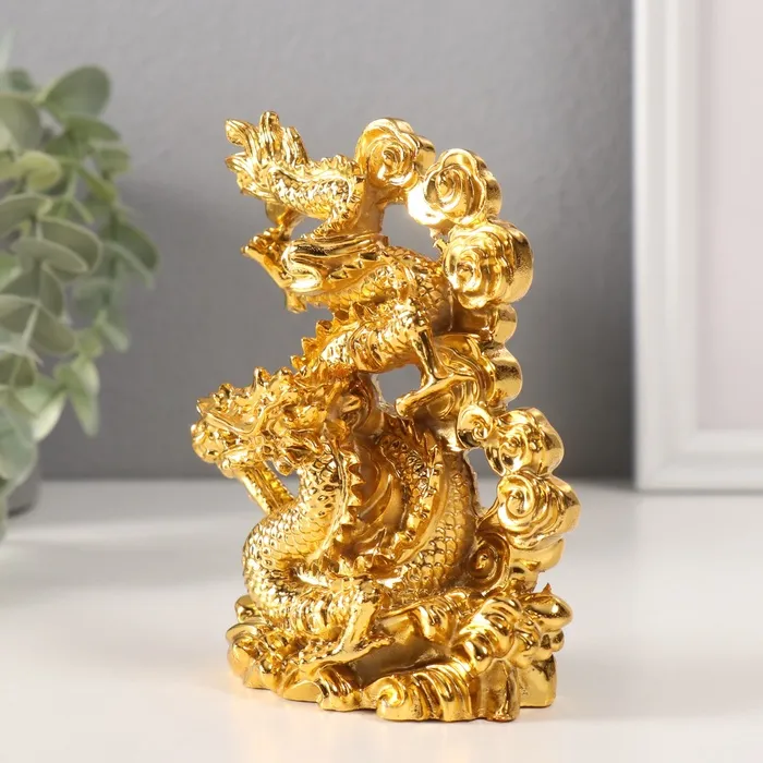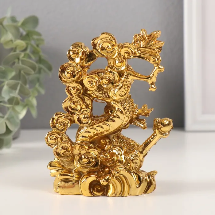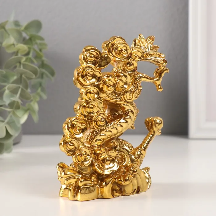 Нэцкэ фигурка «Дракон силы и мудрости», полистоун, золотой, 4.5×8.5×12.2 см — Характеристики