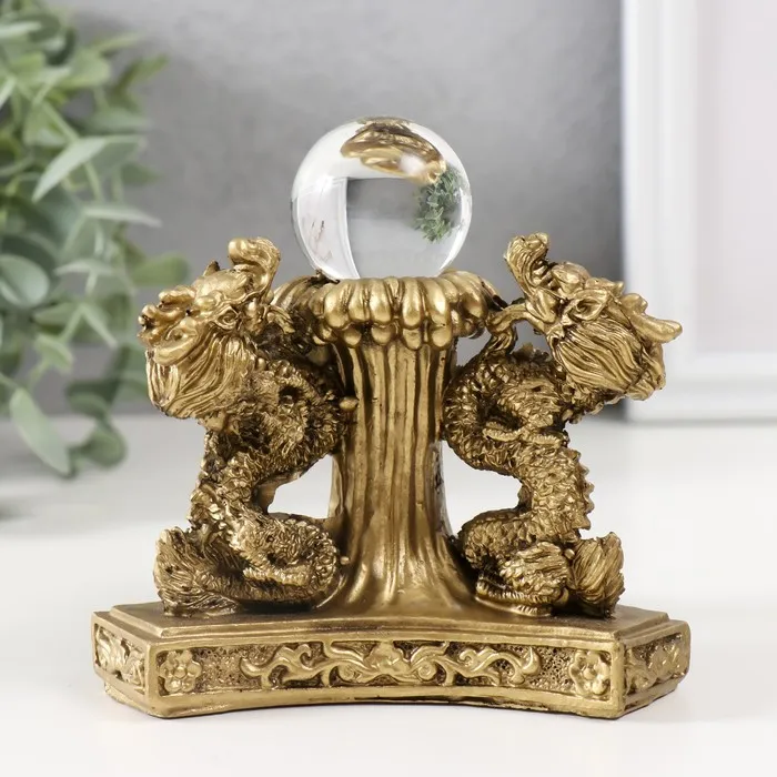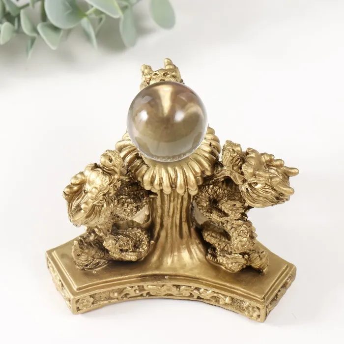 Нэцкэ фигурка «Драконы со стеклянным шаром», полистоун, под бронзу, 8×12×12 см — Характеристики