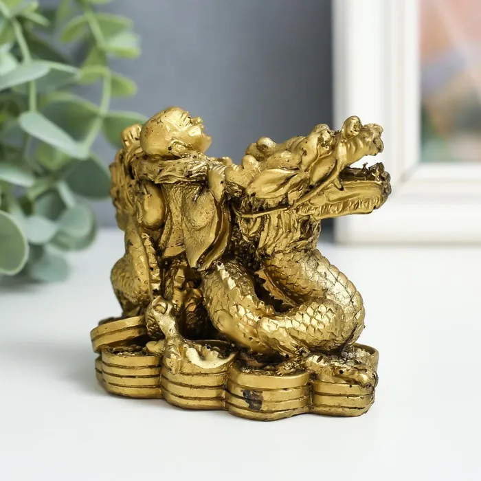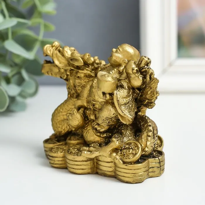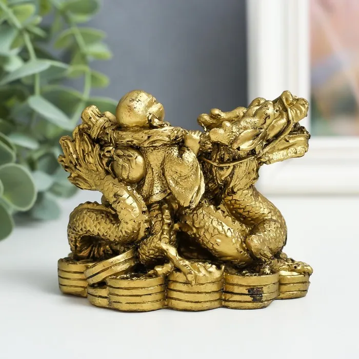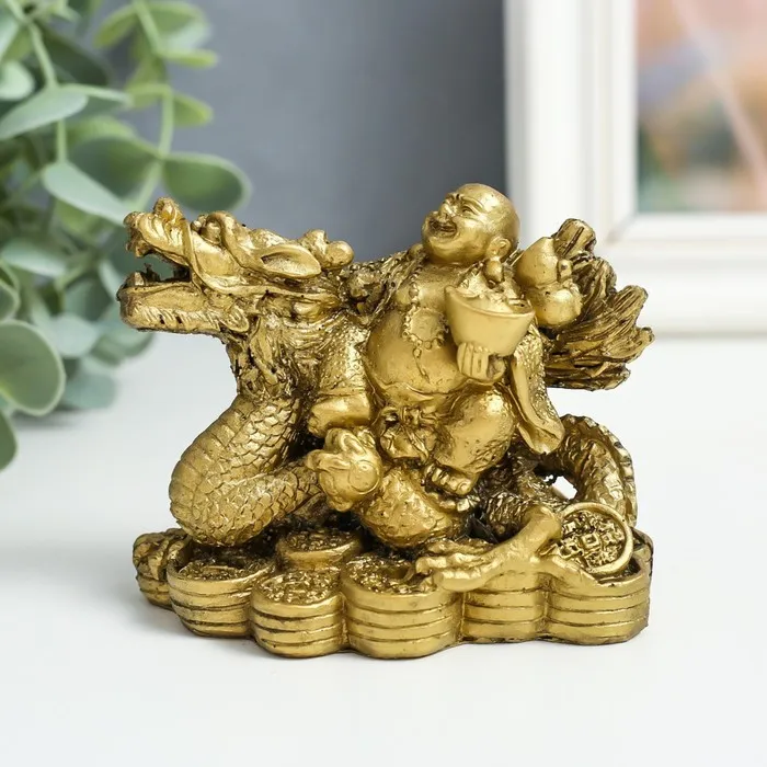 Нэцкэ фигурка «Хотей верхом на драконе», полистоун, под бронзу, 6×9.5×7 см — Характеристики