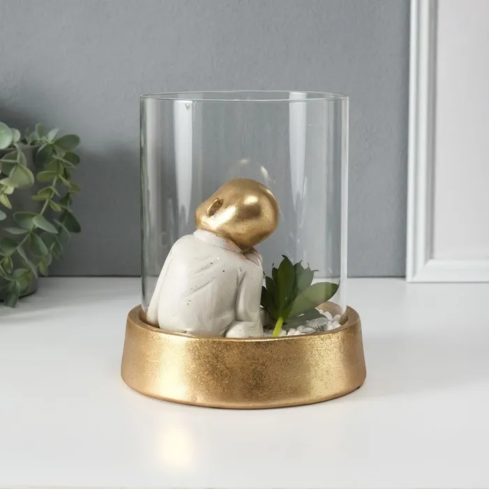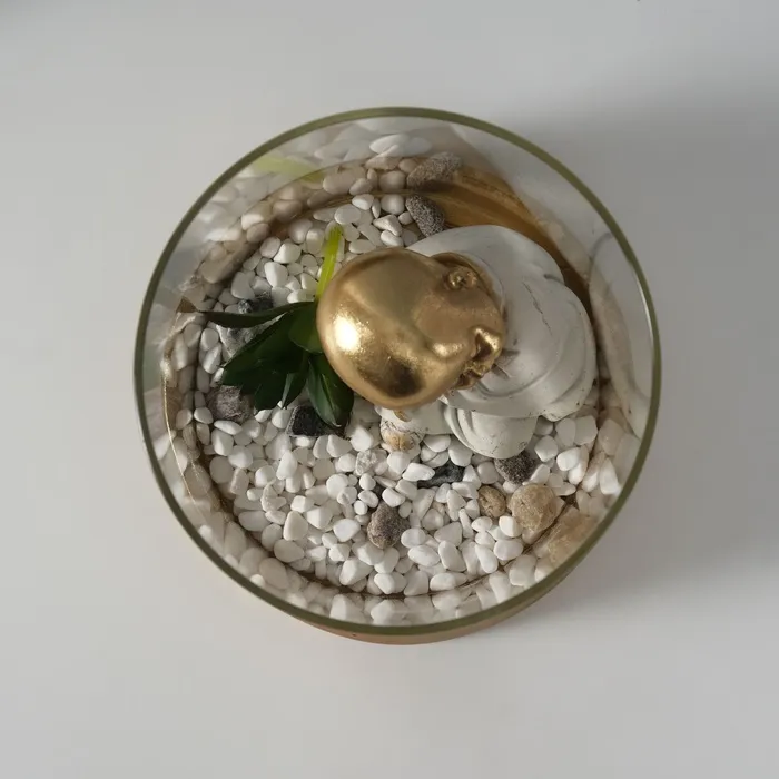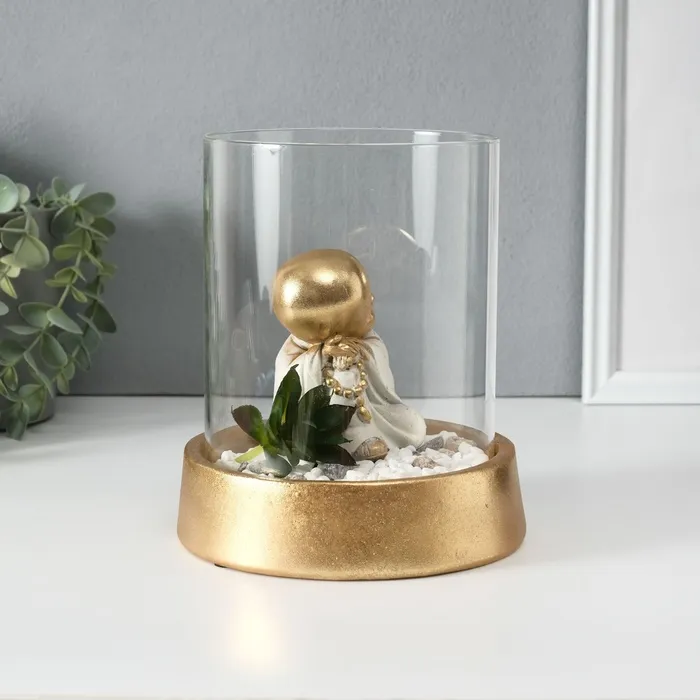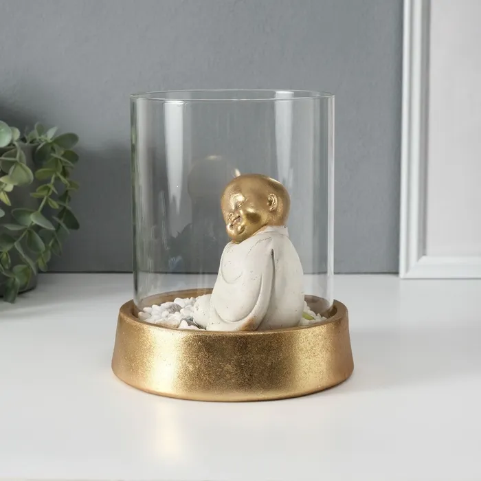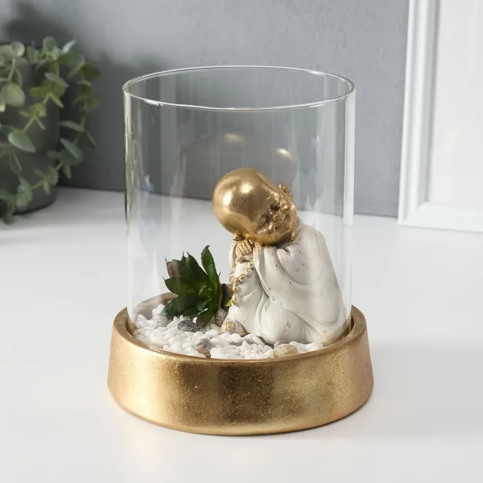 Нэцкэ фигурка «Маленький спящий Будда в саду камней», полистоун, стекло, 15.5×15.5×18 см — Характеристики