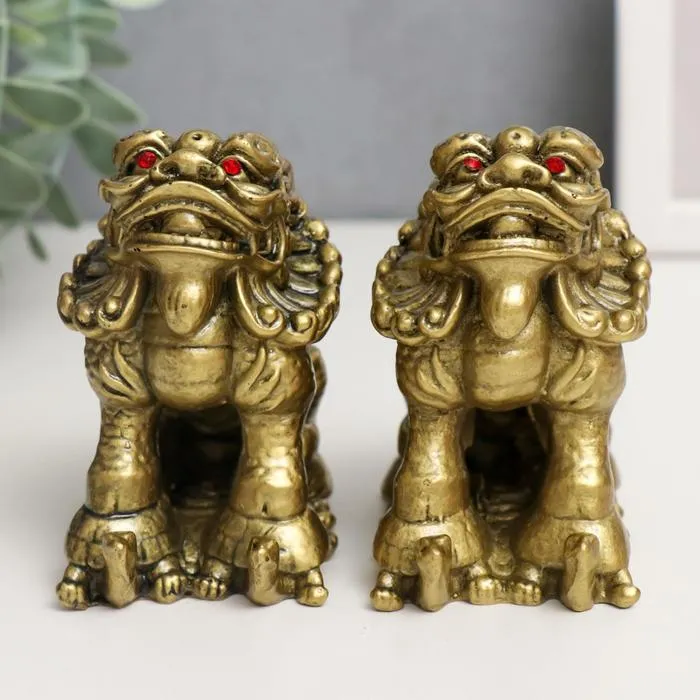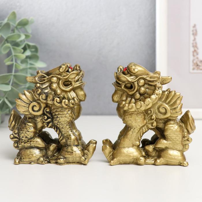 Нэцкэ фигурка «ПиЯО», полистоун, под бронзу, набор 2 шт., 9×5.3×8.5 см — Характеристики