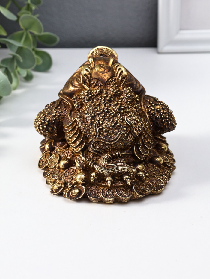 Нэцкэ фигурка полистоун «Денежная жаба с золотой монетой», 12×10.5×7.7 см — Характеристики