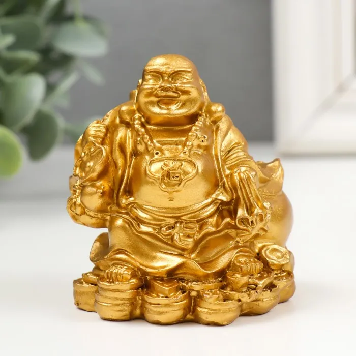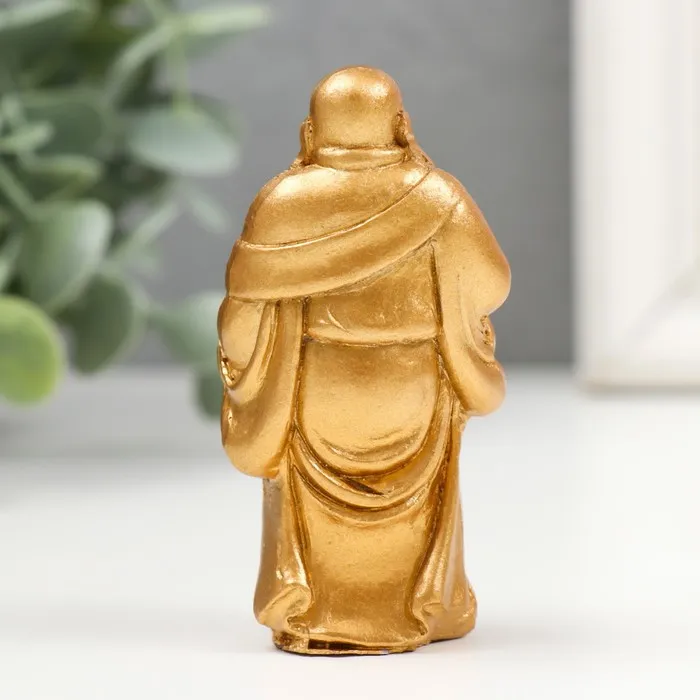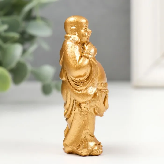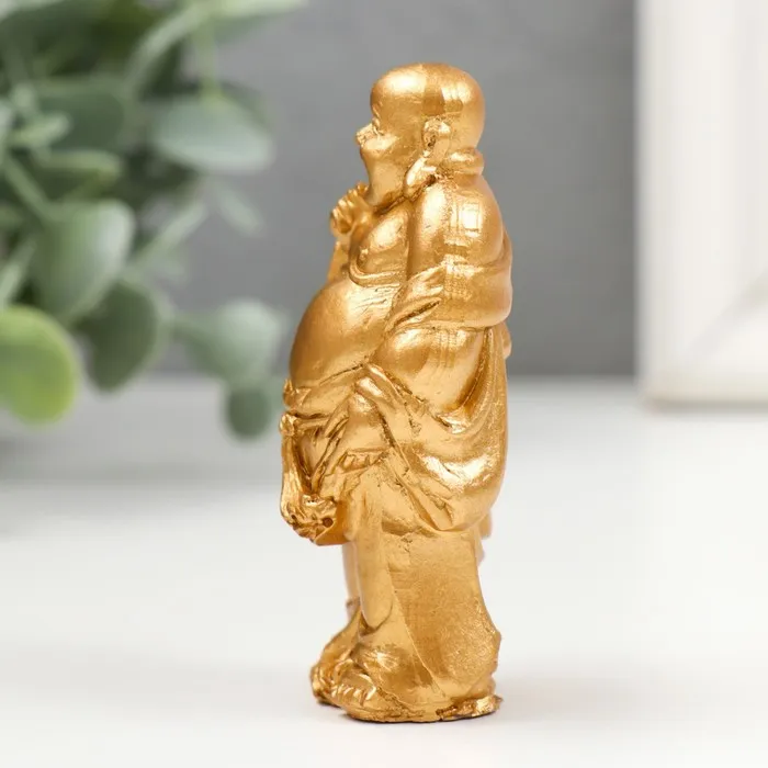Нэцкэ фигурка полистоун «Хотей с жезлом Жуи на золоте», под золото, 5×3×9 см — Характеристики