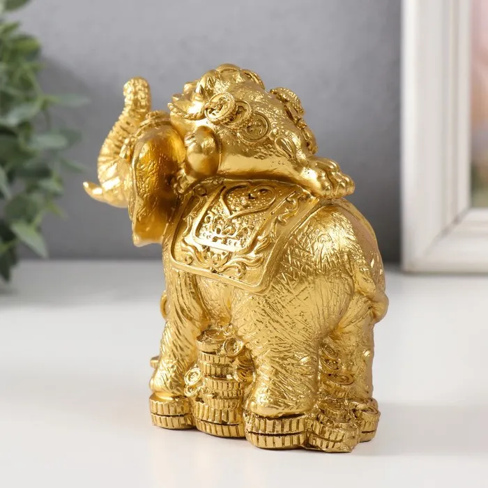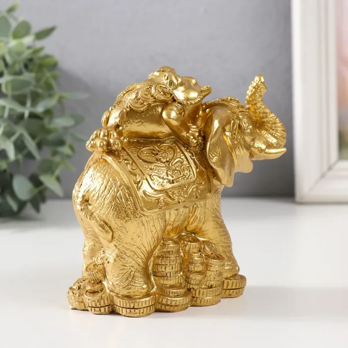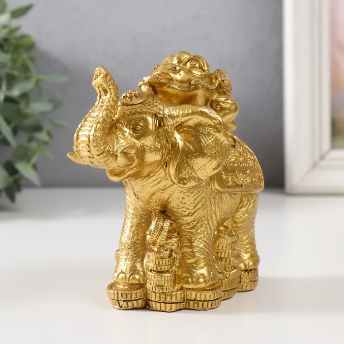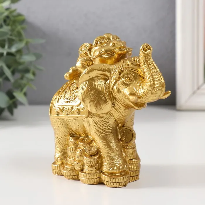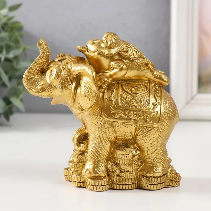 Нэцке фигурка полистоун «Жаба на слоне с монетами», золото, 12×6.8×11.2 см — Характеристики