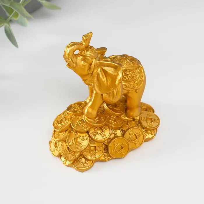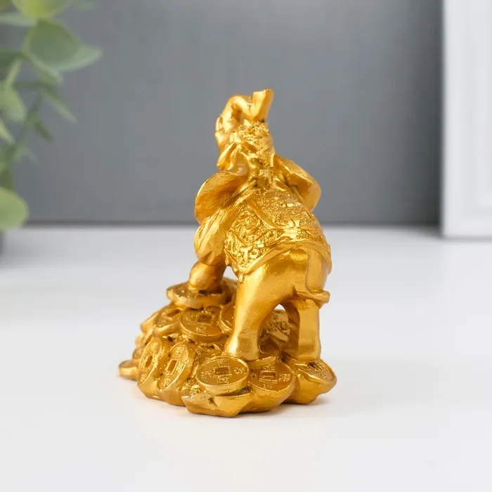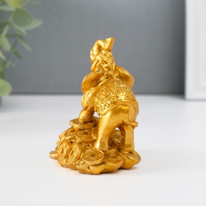Нэцкэ фигурка «Слон на горке монет», полистоун, золотой, 8.7×7.5×5.4 см — Характеристики