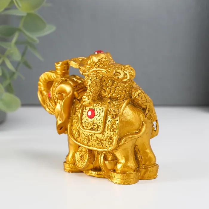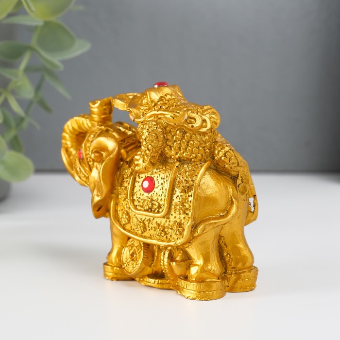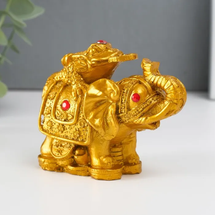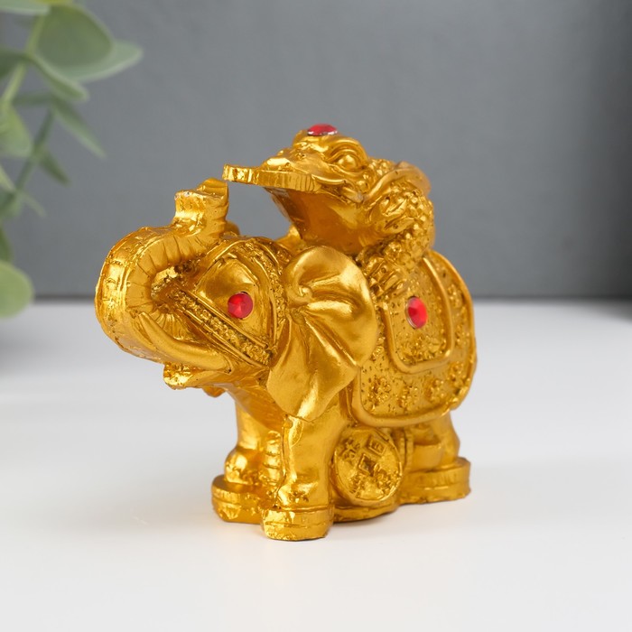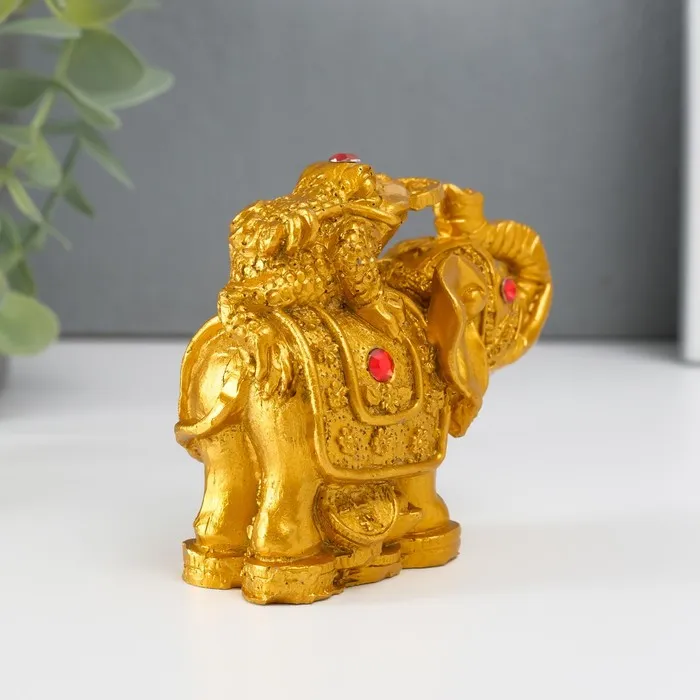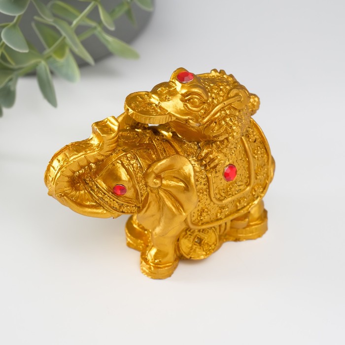 Нэцкэ фигурка «Слон с денежной жабой на спине», полистоун, под бронзу, 7.5×9.3×5.2 см — Характеристики