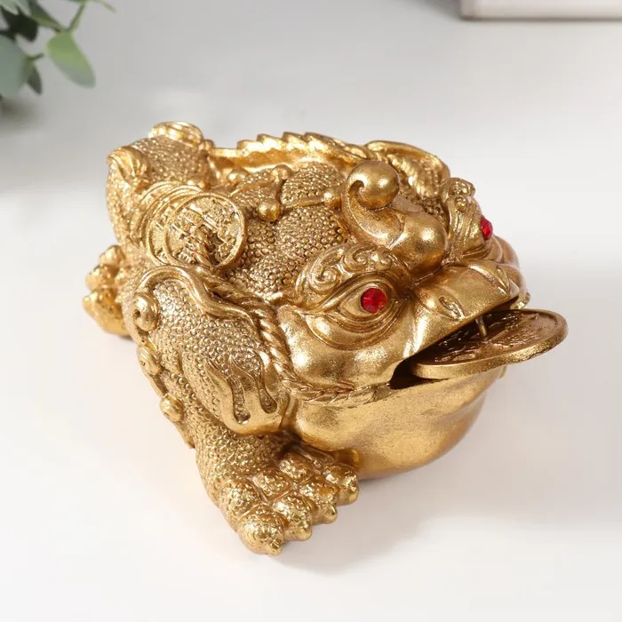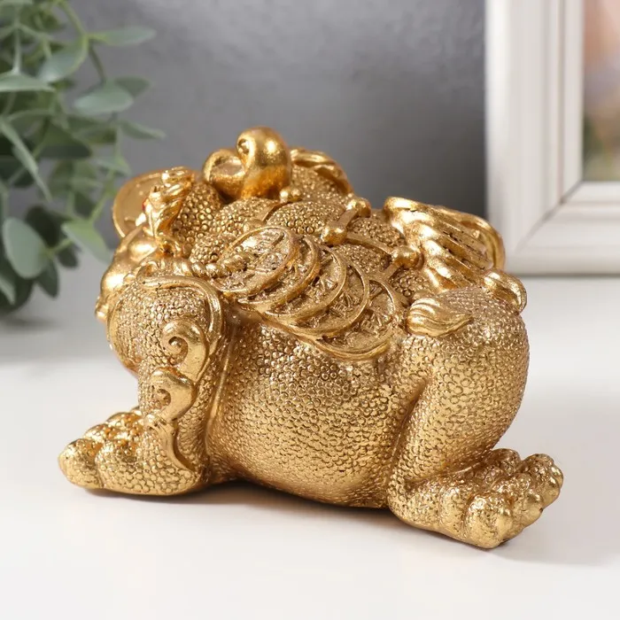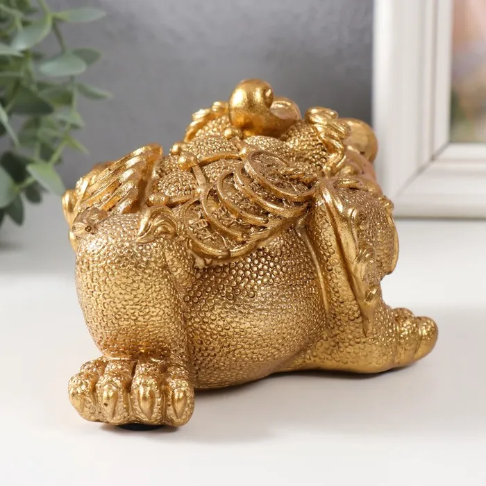 Нэцкэ фигурка «Золотая жаба с монетой», полистоун, золотой, 15.7×12×9.5 см — Характеристики